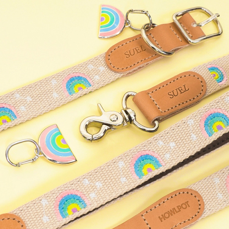 [SUEL X HOWLPOT] 레인보우 스털링 실버 강아지 인식표 + 목줄 & 리쉬 세트