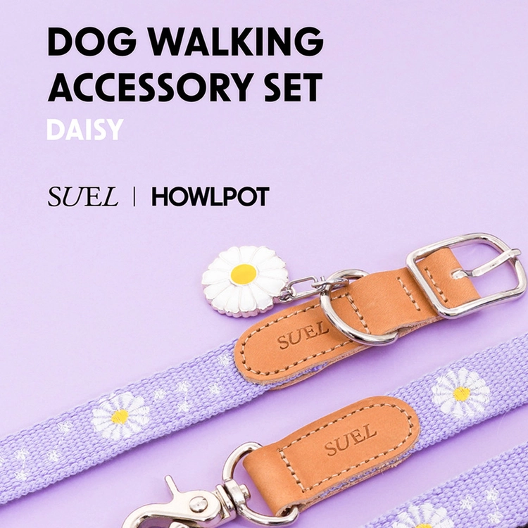 [SUEL X HOWLPOT] 데이지 스털링 실버 강아지 인식표 + 목줄 & 리쉬 세트